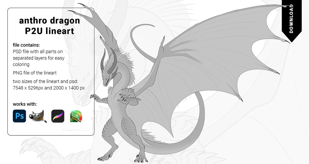 It contais: - PSD file with all parts on separated layers with clipping layers to the base layers for easy coloring - PNG file of the lineart - two sizes of the base smaller and bigger (dimensions in pixels on the preview graphic)
