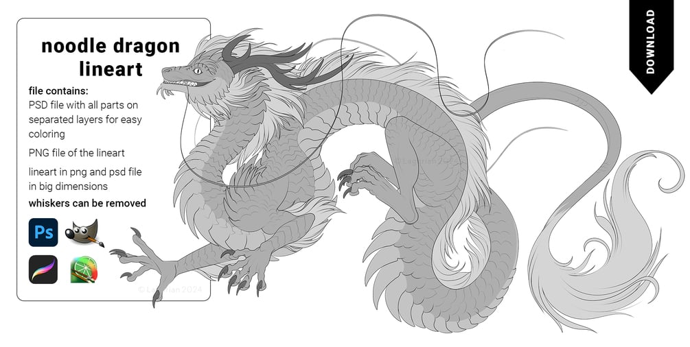Noodle Dragon Lineart